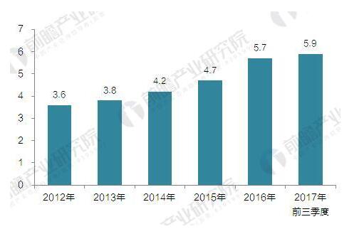 圖表3:2012-2017年中國垃圾發(fā)電中標(biāo)/簽約項(xiàng)目總處理能力(單位:萬噸/日)