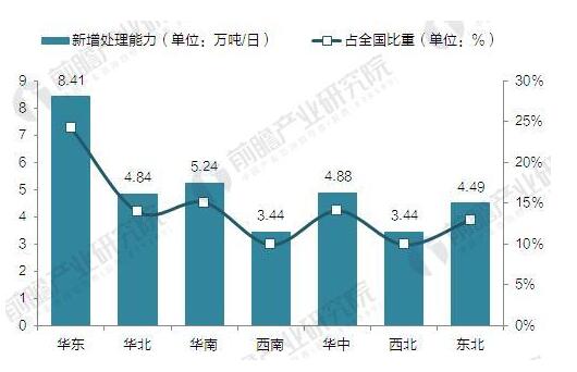 ? ? 具體來看,廣東省新增生活垃圾無害化處理能力增長最多,而中東部沿海經(jīng)濟(jì)發(fā)達(dá)省份依然是生活垃圾無害化處理設(shè)施建設(shè)的核心地區(qū)。其中,華東六省市生活垃圾無害化處理能力總規(guī)模達(dá)到32.04萬噸/日,占全國的比重為34.34%,新增處理能力達(dá)8.07萬噸/日,占全國新增處理能力比重為27.80%,均排在各區(qū)域首位。