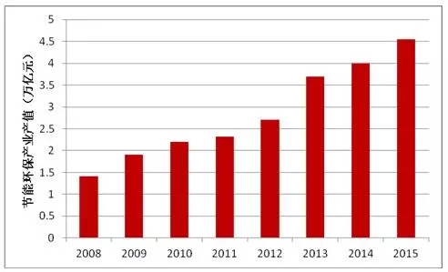 2008-2015年中國節(jié)能環(huán)保產(chǎn)業(yè)產(chǎn)值