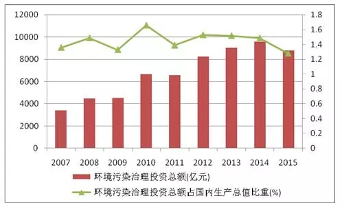 2007-2016環(huán)境污染治理投資及占GDP的比重