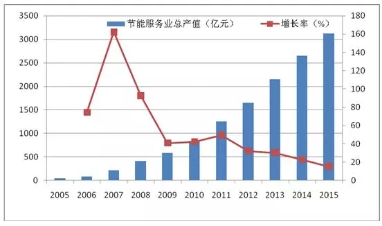 2005-2015年節(jié)能服務業(yè)總產(chǎn)值趨勢變化