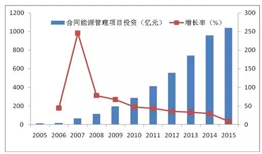 2005-2015年合同能源管理項目投資趨勢變化
